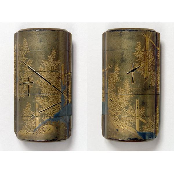 inrō con felci e staccionate