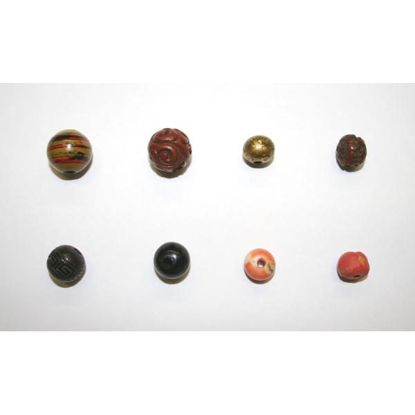 Varie: legno lucidato o dipinto o laccato/ corallo/ nocciolo (?)/ metallo dorato.