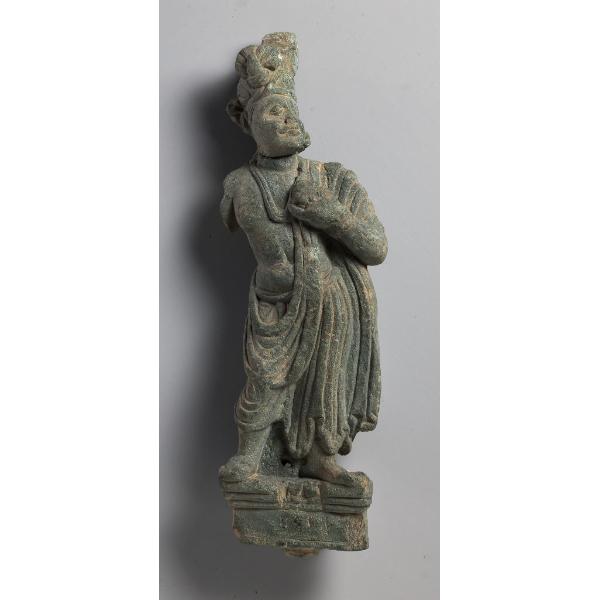 Devoto stante con vaso contenente offerte
