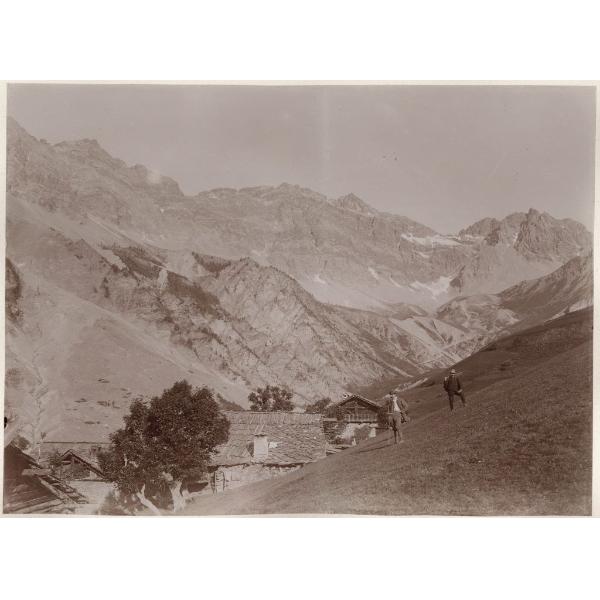 GRANGIE DELLA RHO - E ROCCA BERNAUDA. VALLE DI SUSA, ESCURSIONISTI PRESSO LE GRANGES DE LA RHO CON LA ROCCA BERNAUDA SULLO SFONDO