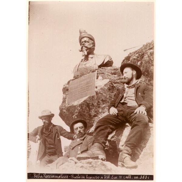 VETTA ROCCIAMELONE- BUSTO IN BRONZO A VITT.EM. II (ALT. M.3537.VALLE DI SUSA, GRUPO DI ESCURSIONISTI SULLA CIMA DEL ROCCIAMELONE SOTTO AL BUSTO DI VITTORI EMANUELE II
