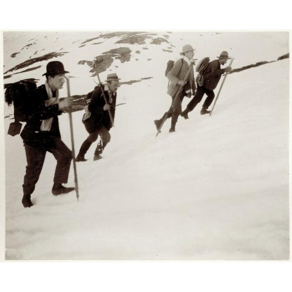 IN MARCIA VERSO LA MORENA DELL'AGNELLO, VALLE DI SUSA, ALPINISTI SUL GHIACCIAIO DELL'AGNELLO