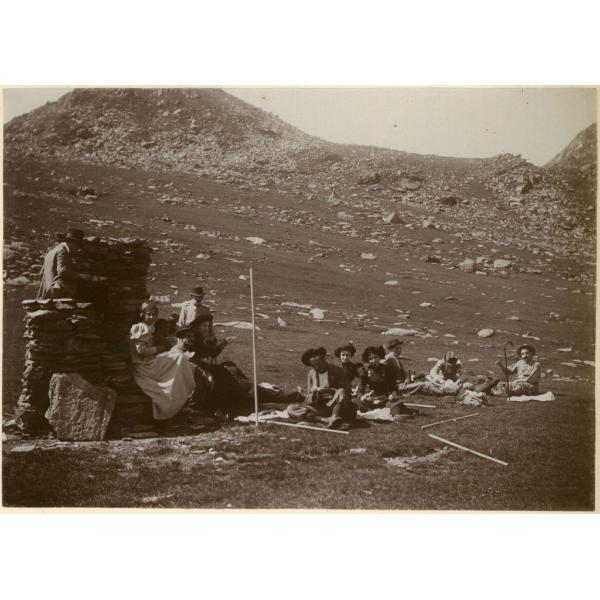 SUL COLLE PIAN DEI MULI. VAL CHIUSELLA, GRUPPO DI ESCURSIONISTI DURANTE UNA SOSTA SUL COLLE PIAN DEI MULI
