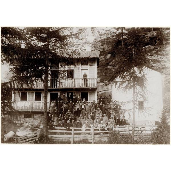 ALL'HOTEL DES ALPES (AUX BUSSERAILLES) GITA SOCIALE DELL'U.E E.I. VALLE DI AOSTA/ VALTOURNENCHE, GRANDE GRUPPO DELL'UNIONE ESCURSIONISTI DI FRONTE ALL' HOTEL DDEL ALPES AUX BUSSERAILLES
