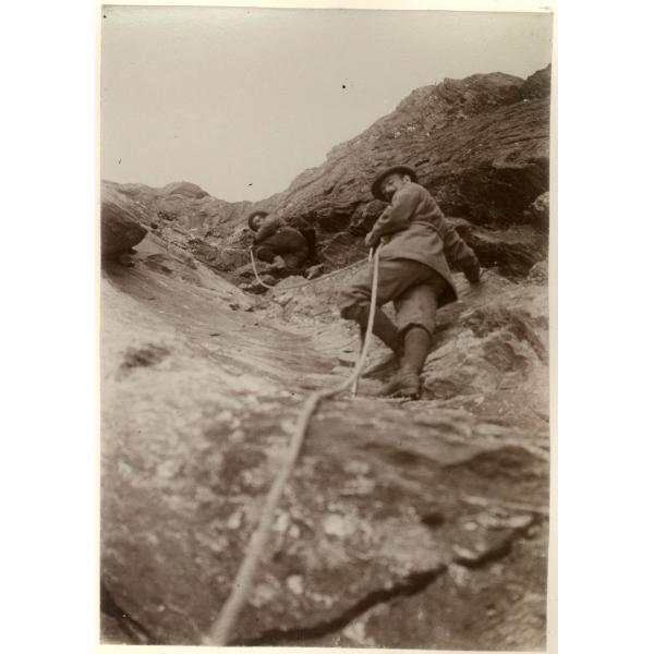 GALLEANI LUIGI, SCALANDO L'OVARDA - PARETE N.. VALLI DI LANZO, VALLE DI VIU', ALPINISTI DURANTE LA SCALATA DELLA PARETE NORD DELLE TORRI D'OVARDA