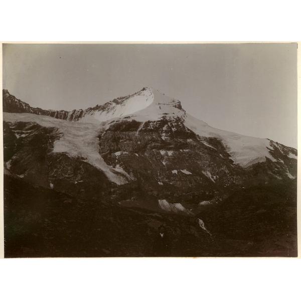 LA GRIVOLA (3969 M) PARETE NORD E CRESTA NORD (ALL'ALBA). VALLE DI AOSTA/ LA GRIVOLA VISTA DA NORD (DAL PIANO DEL GRAND NOMENON) CON UN ALPINISTA IN PRIMO PIANO