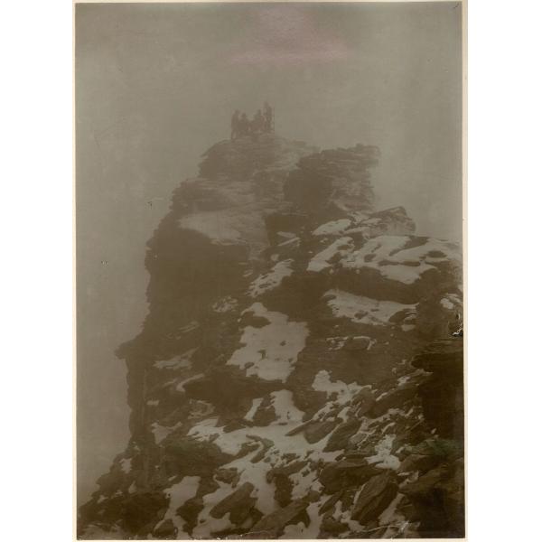 SULLA TESTA DEL RUTOR (NEBBIA). VALLE DI AOSTA/ VALLE DEL RUTOR, GRUPPO DI ESCURSIONISTI SULLA CIMA DELLA TESTA DEL RUTOR