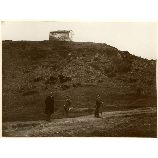 S.VALERIANO. VALLE DEL SANGONE?/ TRE ESCURSIONISTI PRESSO UN COLLE CON LA CAPPELLA DI SAN VALERIANO
