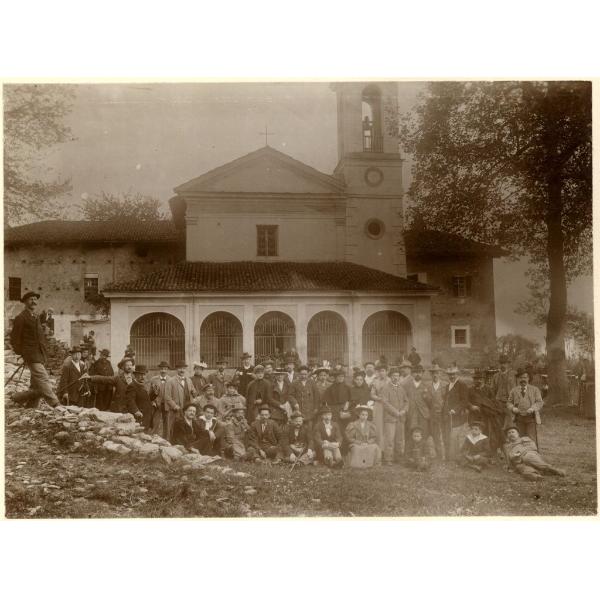 GABINIO MARIO, PIEMONTE, LOCALITA' NON IDENTIFICATA/ GRUPPO DI ESCURSIONISTI NEI PRESSI DI UN SANTUARIO