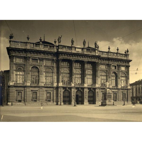 TORINO/ PALAZZO MADAMA, PIAZZA CASTELLO, PROSPETTO OCCIDENTALE COL MONUMENTO ALL'ALFIERE DELL'ESERCITO SARDO