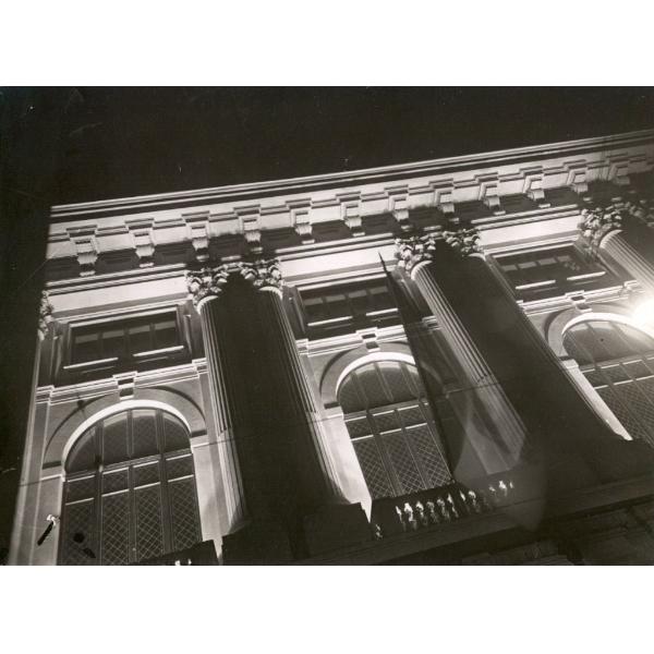 CASSA RISP. TORINO/ PALAZZO DELLA CASSA DI RISPARMIO, VIA XX SETTEMBRE 29-31, PROSPETTO PRINCIPALE, VISTA SCORCIATA DAL BASSO, RIPRESA NOTTURNA