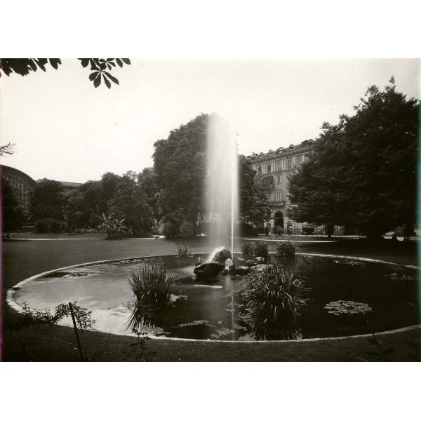 TORINO/ PIAZZA CARLO FELICE, GIARDINO SAMBUY, VISTA DA EST CON LA FONTANA IN PRIMO PIANO