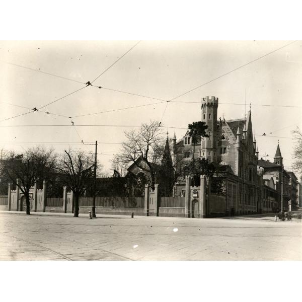 TORINO/ PALAZZINA IN STILE TUDOR, CORSO VITTORIO EMANUELE ANGOLO CORSO MASSIMO D'AZEGLIO. VISTA DA EST, CON LA CHIESA DI NOSTRA SIGNORA DEL RITIRO AL CENACOLO IN SECONDO PIANO