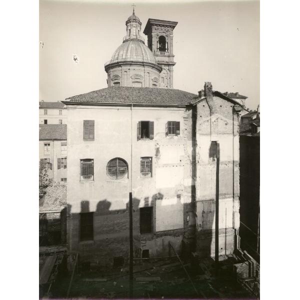 TORINO/ CANTIERE DEL PALAZZO DEI SERVIZI DEMOGRAFICI, VIA BARBAROUX, VISTA DA SUD, DA VIA BARBAROUX, CON LA CUPOLA DELLA CHIESA DEI SANTI MARTIRI