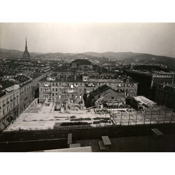TORINO/ VIA ROMA, PRIMO TRATTO, PANORAMA DELLA CITTA' VERSO EST CON L'ISOLATO DEL TEATRO CARIGNANO IN COSTRUZIONE IN PRIMO PIANO
