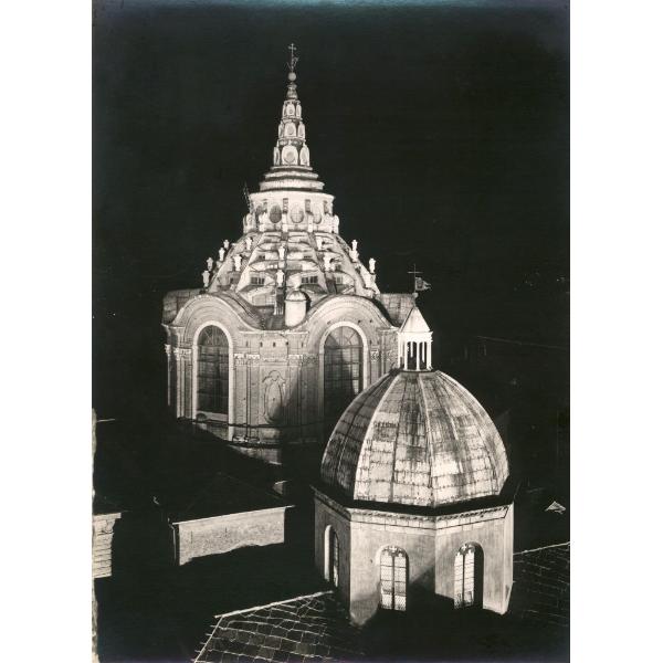 TORINO/ DUOMO, PIAZZA SAN GIOVANNI, RIPRESA NOTTURNA DELLA CUPOLA DEL DUOMO E DELLA CAPPELLA DELLA S.SINDONE ILLUMINATE