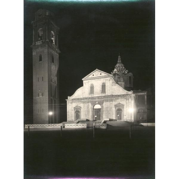 GABINIO MARIO, TORINO/ DUOMO, PIAZZA SAN GIOVANNI, VISTA DA SUD OVEST CON LE TRANSENNE COLLOCATE IN OCCASIONE DELL'OSTENSIONE DELLA SINDONE, RIPRESA NOTTURNA