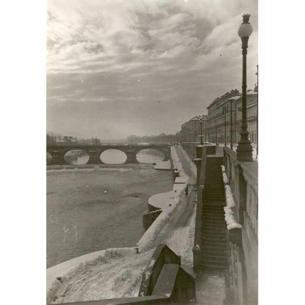 TORINO/ MURAZZI DI LUNGO PO CADORNA, VISTA DI SCORCIO VERSO SUD CON LA NEVE