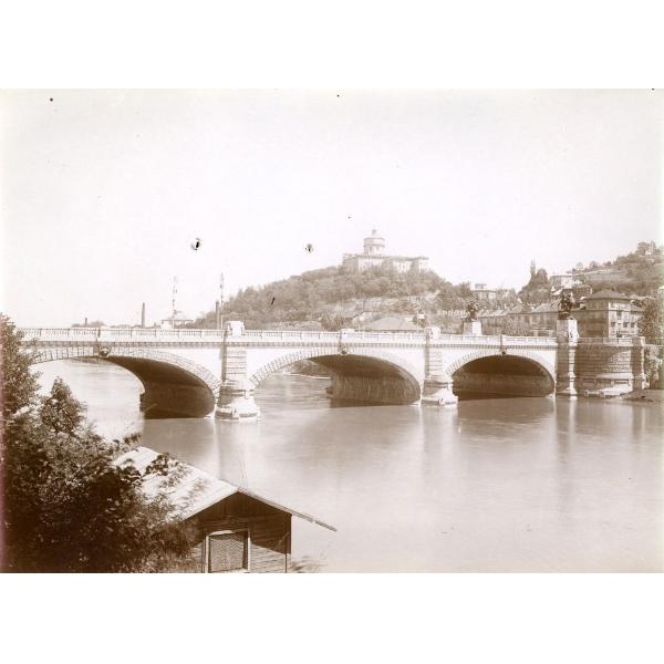 TORINO/ PONTE UMBERTO I SUL PO RIPRESO DALL'IMBARCADERO SULLA SPONDA SINISTRA A MONTE. SULLO SFONDO IL MONTE DEI CAPPUCCINI