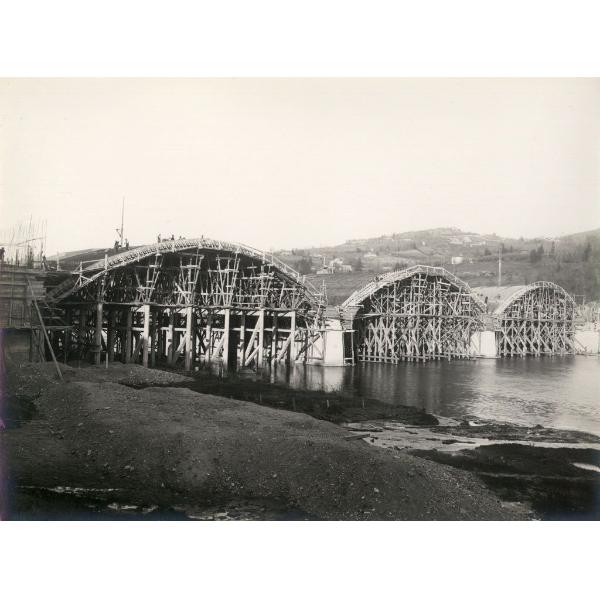 GABINIO MARIO, TORINO/ PONTE BALBIS GIA' PONTE VITTORIO EMANUELE III AL PILONETTO, VISTA DEL CANTIERE DA SUD DURANTE LA POSA DELL'ARMATURA DELLE VOLTE