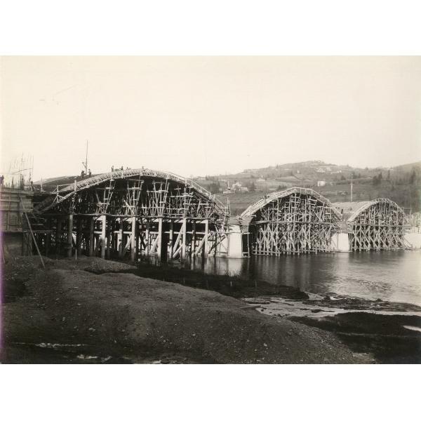 TORINO/ PONTE BALBIS GIA' PONTE VITTORIO EMANUELE III AL PILONETTO, VISTA DEL CANTIERE DA SUD DURANTE LA POSA DELL'ARMATURA DELLE VOLTE