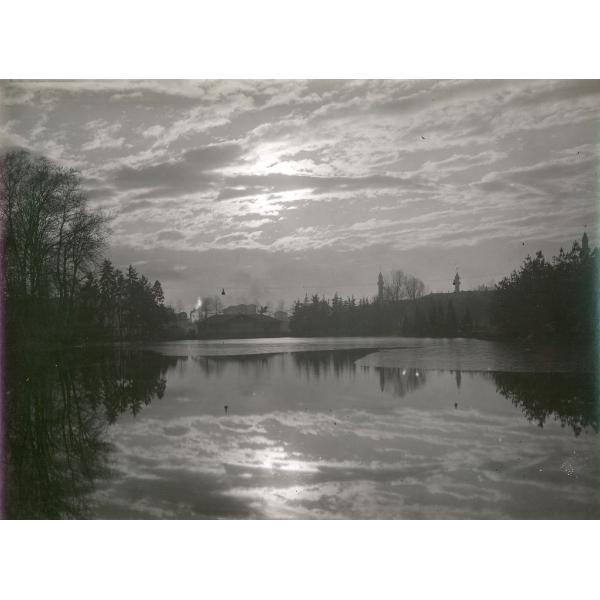 TORINO/ PARCO DEL VALENTINO, PANORAMA CON LO CHALET E GLI EDIFICI DI CORSO MASSIMO D'AZEGLIO CHE SI RIFLETTONO NEL LAGHETTO DEI PATTINATORI