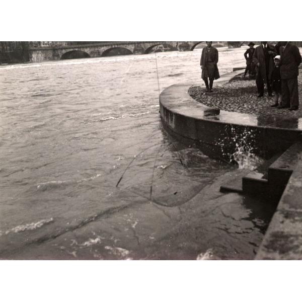TORINO/ PESCATORI AI MURAZZI DI LUNGO PO CADORNA COL FIUME PO IN PIENA