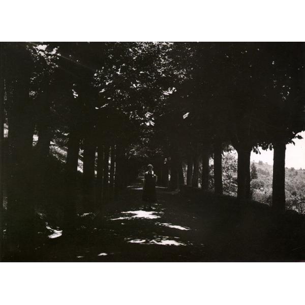 TORINO/ PARCO DI VILLA GENERO, PICCOLO VIALE IN OMBRA CON UNA DONNA IN POSA