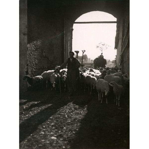COLLEGNO?, PASTORE CHE CONDUCE IL GREGGE IN CASCINA. RIPRESA IN CONTROLUCE SOTTO L'ANDRONE