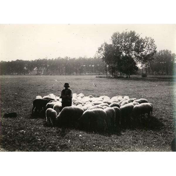 PIEMONTE, GIOVANE PASTORE CIRCONDATO DAL GREGGE IN UN PRATO