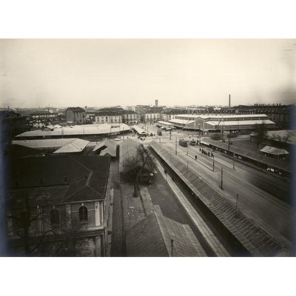 PORTA PALAZZO DALL'ALTO. TORINO/ PIAZZA EMANUELE FILIBERTO (ORA PIAZZA DELLA REPUBBLICA), MERCATO DI PORTA PALAZZO, VISTA GENERALE DALL'ALTO