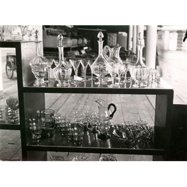TORINO?, VETRINA CON BROCCHE E BICCHIERI IN VETRO (RICHARD GINORI?, VIA ROMA?)