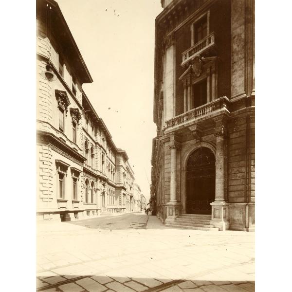 TORINO/ VIA ALFIERI, VISTA DA OVEST, DA VIA ARSENALE, COL PALAZZO DELLE POSTE E TELEGRAFI VISTO DI SCORCIO