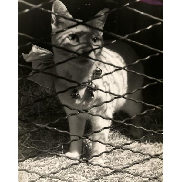 TORINO?, MOSTRA FELINA. GABBIA CON GATTO DAL COLLARE A SONAGLI