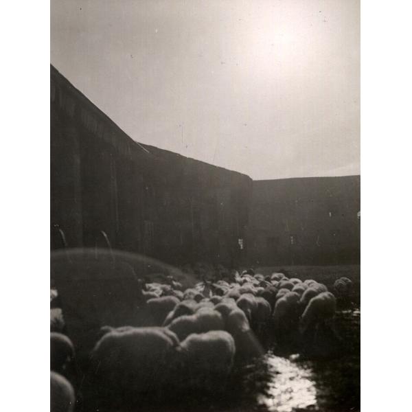COLLEGNO?, GREGGE NELLA CORTE DI UNA CASCINA. RIPRESA IN CONTROLUCE