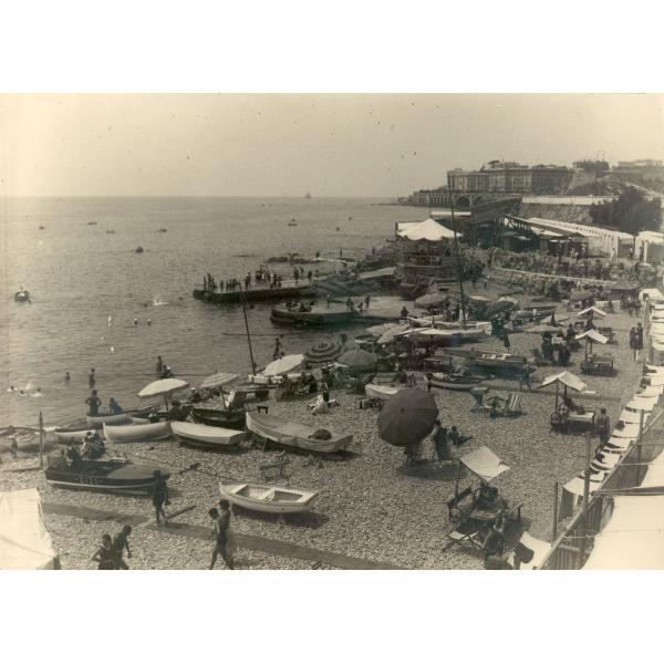 GENOVA/ SPIAGGIA CON BARCHE E BAGNANTI VISTA DAL LUNGOMARE