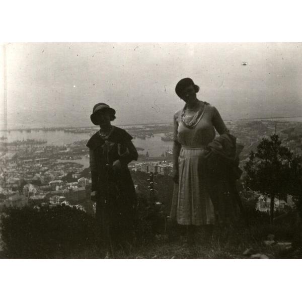 GENOVA/ DUE DONNE SULLO SFONDO DEL PANORAMA DELLA CITTA' COL PORTO