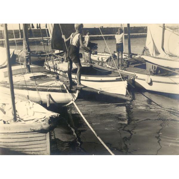 TRE BAMBINI SU BARCHE A VELA ORMEGGIATE, LOCALITA' NON IDENTIFICATA
