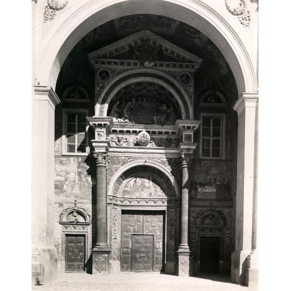 AOSTA, CATTEDRALE DELL'ASSUNTA, PARTICOLARE DELLA FACCIATA COL PORTALE
