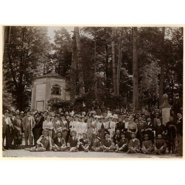 ORTA - NEL BOSCO DEL SACRO MONTE. ORTA, GRANDE GRUPPO DI ESCURSIONISTI IN POSA AL SACRO MONTE