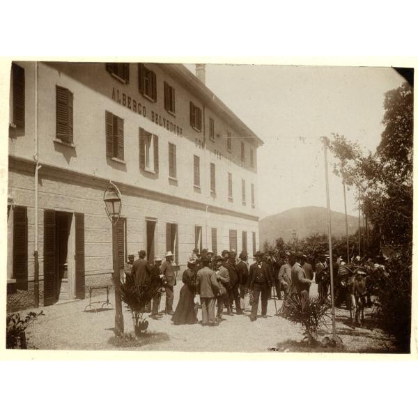 ORTA - ALL'ALBERGO BELVEDERE. ORTA, ESCURSIONISTI NEL GIARDINO DAVANTI ALL'ALBERGO BELVEDERE CON PENSIONE
