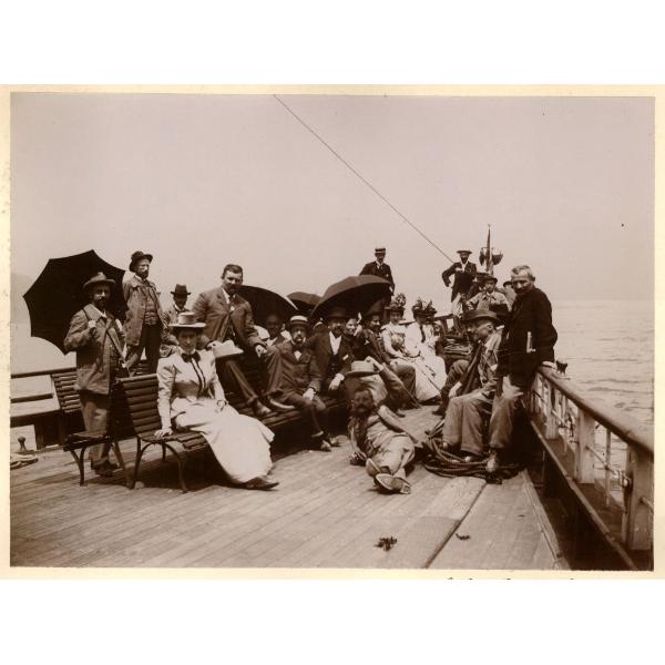SUL BATTELLO. LAGO MAGGIORE, GRUPPO DI ESCURSIONISTI IN POSA SUL BATTELLO