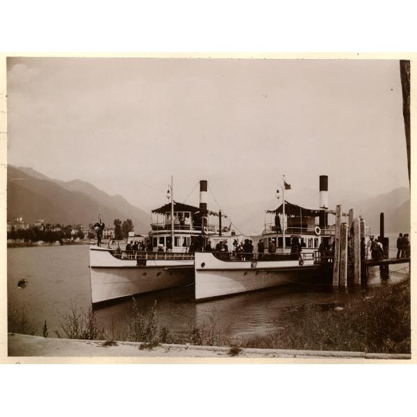 LOCARNO - LO SBARCO. LOCARNO, DUE BATTELLI ALL'ATTRACCO DURANTE LO SBARCO DEI PASSEGGERI