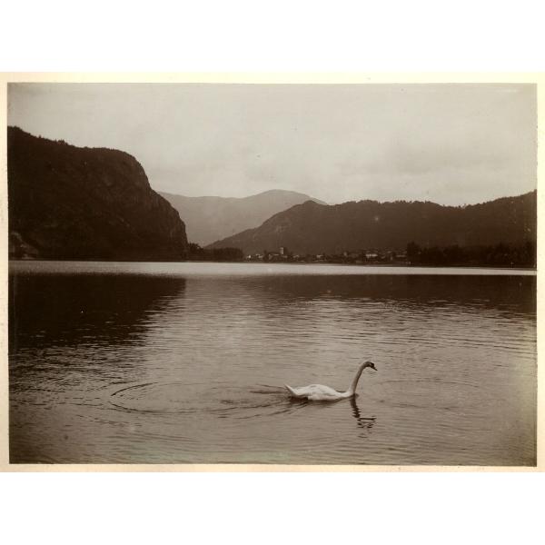 CIGNO SUL LAGO DI LUGANO. LUGANO, PAESAGGIO LACUSTRE CON UN CIGNO IN PRIMO PIANO