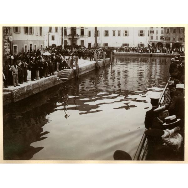 ARRIVO NEL PORTO DI RIVA DI TRENTO. RIVA DEL GARDA, ARRIVO DEL BATTELLO DELL'UNIONE ESCURSIONISTI