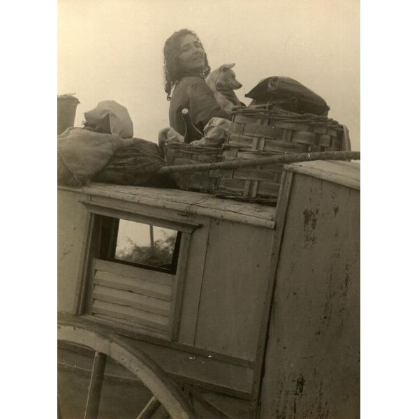 PIEMONTE?, RITRATTO DI ZINGARA SEDUTA SUL SUO CARRO CON CUCCIOLO IN GREMBO