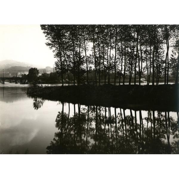 MONCALIERI/ PAESAGGIO FLUVIALE CON I DUE PONTI IN SECONDO PIANO ED IL CASTELLO SULLO SFONDO