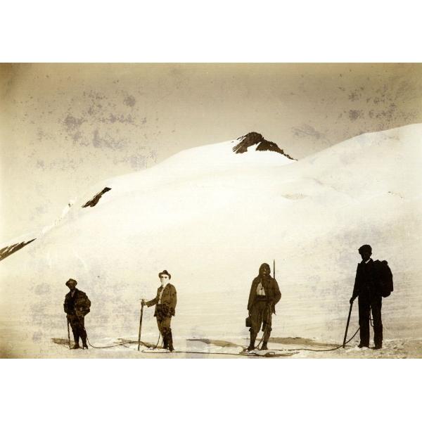 LA PUNTA ROSSA/ ET GLACIER DU TRAJO - (GR. GRIVOLA). VAL NOMENON, QUATTRO ALPINISTI SUL GHIACCIAIO DI TRAJOZ