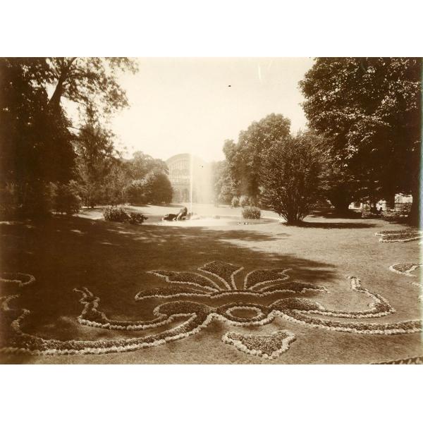 TORINO/ PIAZZA CARLO FELICE, GIARDINO SAMBUY, VISTA DA NORD EST CON AIUOLA FIORITA IN PRIMO PIANO. SULLO SFONDO IL MONUMENTO A D'AZEGLIO E IL PADIGLIONE DI PORTA NUOVA
