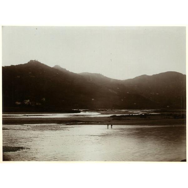 TRAMONTO SUL ROJA PRESSO VENTIMIGLIA. PAESAGGIO CON TRAMONTO SUL TORRENTE ROJA PRESSO VENTIMIGLIA
